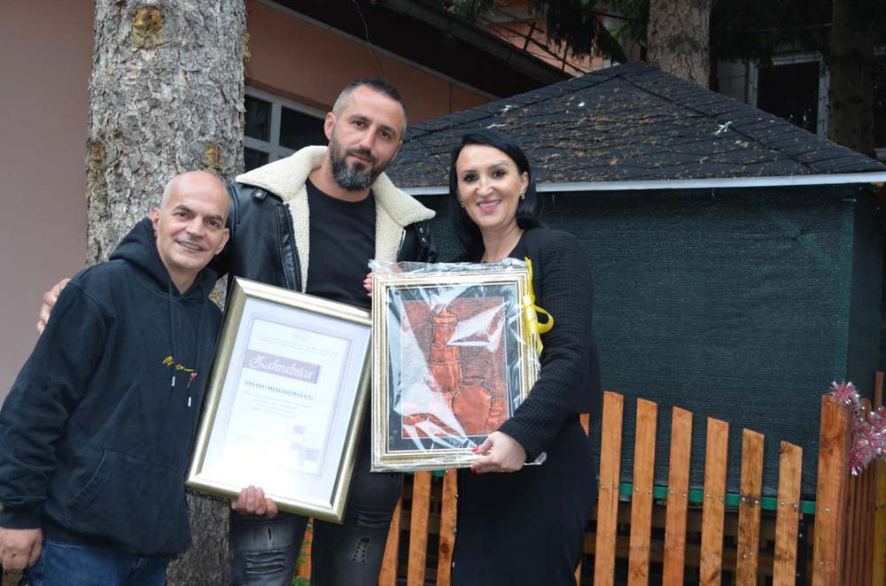 U znak zahvalnosti, direktorica Bučan i LJ. B. su Nihadu uručili zahvalnicu i rukotvorinu naših korisnika, a Nihad je na način koji samo svojstven ljudima velikog i toplog srca, skromno se zahvalio i obećao ponovni dolazak u Ustanovu Pazarić. Ponovno druženje sa našim LJ. B., u njegovom šadrvanu.
